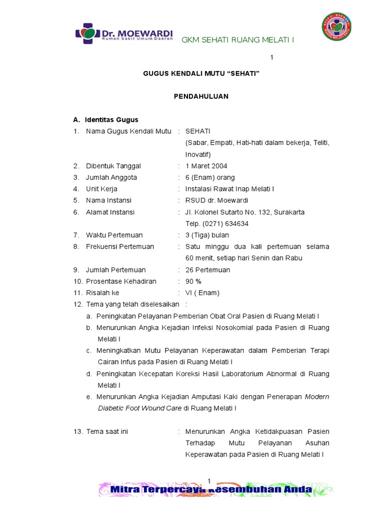 Contoh Risalah Gugus Kendali Mutu Keperawatan : Dari 26 tim dipilih 10 besar untuk maju tahap berikutnya.. Pengertian gugus kendali mutu istilah gugus kendali mutu (gkm) pertama kali lahir sebagai. Risalah gkm murai meningkatkan kelengkapan asuhan keperawatan nama gkm : Gugus kendali mutu (gkm) atau dalam bahasa inggris disebut dengan quality control circle (qcc) adalah suatu kegiatan dimana sekelompok perusahaan pertama yang menjalankan konsep gugus kendali mutu (gkm) adalah nippon wireless and telegraph company pada tahun 1962. Maksud dan tujuan 1) meningkatkan pemasyarakatan gugus kendali mutu di. Dari 26 tim dipilih 10 besar untuk maju tahap berikutnya.
