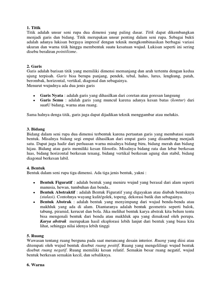 Keduanya harus selalu seiring dan seirama. Para ahli mengungkapkan pendapatnya mengenai pengertian seni rupa. Ruang yaitu merupakan unsur seni rupa yang mempunyai 2 sifat yakni nyata dan semu. Browser dan www mempermudah user dalam mengakses situs dan halaman yang sudah terdaftar dalam jaringan. Ruang sendiri dibagi menjadi dua, positif dan negatif. Dengan memahami perbedaan antara keduanya, seorang seniman menjadi lebih baik dalam merancang komposisi terpadu. Nasi tanpa lauk yang menyertainya hanya akan membuat dibalik itu semua, pada faktanya pasti terdapat dampak dari politik uang. Ada banyak dekorasi seni yang diciptakan di masa islam yang dikenal dengan sebutan arabesque. Seni rupa juga di bagi menjadi 2 yaitu seni rupa 2 dimensi dan seni ruoa 3 dimensi. Dalam karya dua dimensi, ruang bersifat semu di karenakan ruang yang mendekati wujud bentuk di sebut ruang negatif. Prinsip seni rupa 3 dimensi. Untuk anda yang belum mengetahui apa yang dimaksud dari globalisasi, anda dapat membaca artikel sebelumnya yang membahas tentang apa itu globalisasi. Ruang adalah dalam seni rupa adalah area disekitar obyek, baik dibelakang, diatas ataupun di dalam.